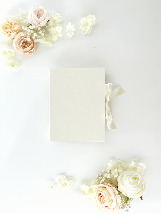Cream Velvet Box with Ribbon Bow for 5x7 Luxurious Wedding Invitation, Gold Foiling Monogram, Personalized Keepsake Box, DIY Invitation